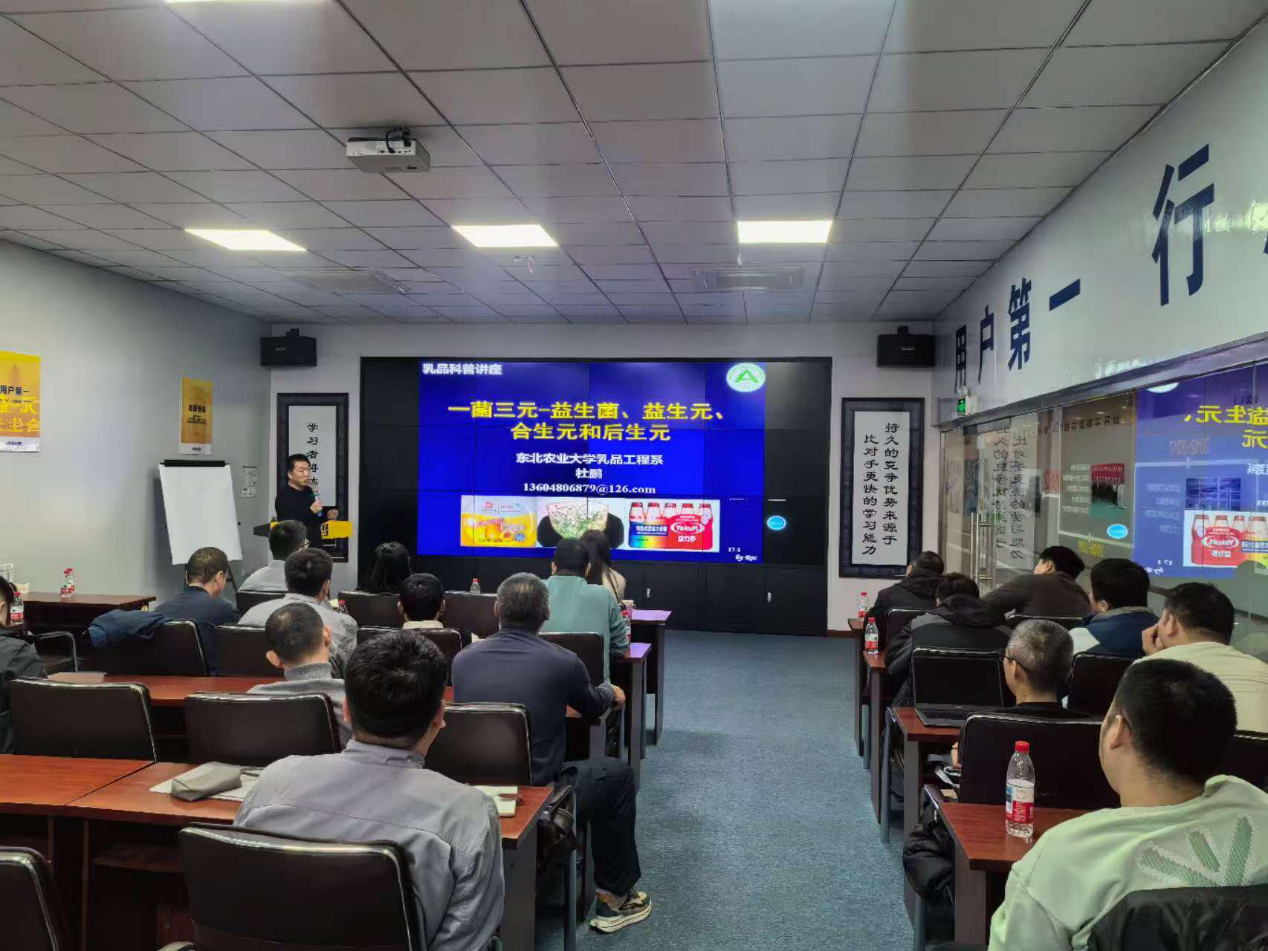 在企业专项培训环节,张秀秀、杜鹏分别就《乳清与稀奶油的高值化加工》和《一菌三元:益生菌、益生元、合生元与后生元》开展了专题讲座,从原料预处理到工艺优化,从小细菌到大应用,层层解析,并对企业骨干提出的问题进行了一一解答。杜鹏还现场解决了企业提出的菌株退化技术难题。新入驻科技小院的研究生也深度感受了乳品智慧化生产过程,并深入微生物检验实验室,全程参与企业真实场景。