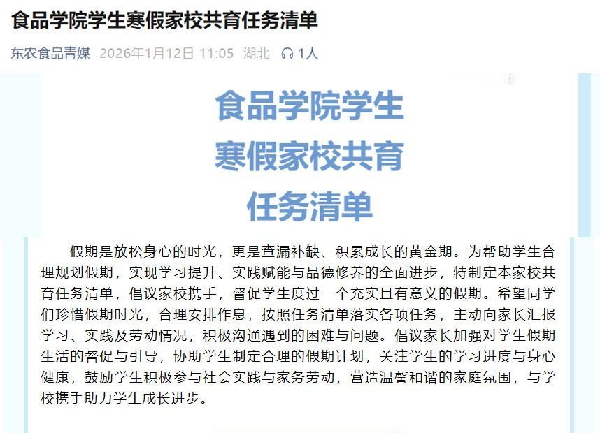 特色育人,润物无声。寒假期间,学院精心策划12项线上特色活动,将“文化传承+心理成长+专业实践”有机融合,共计参与800余人次。同时,学院2025级本科新生全员参与87支社会实践团队,围绕党史学习、公益志愿、乡村振兴等主题深入基层一线,推动专业知识与社会实践双向赋能,相关成果获中国日报网等主流媒体关注报道,充分展现食品学子的青春风采和责任担当。
