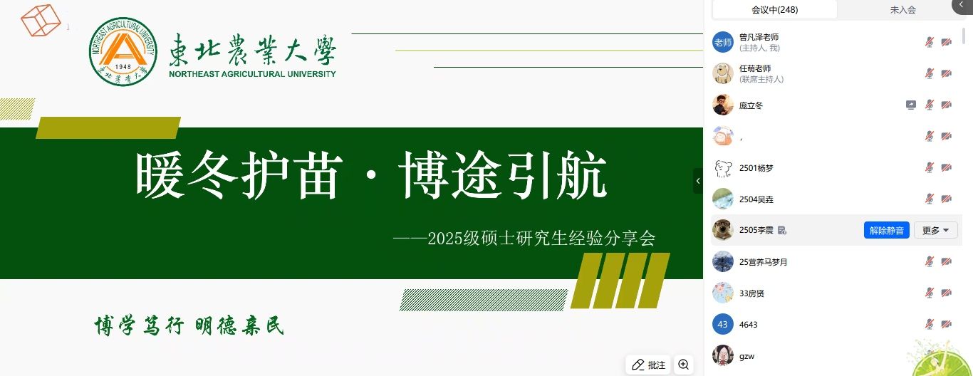 深度辅导,云端护航。学院为484名2025级本科新生及家长定制“新年礼物”-食品“家校共育任务清单”,围绕学业提升、实践锻炼、作息管理、家校互动四大维度,为学生假期成长绘制清晰路线图,搭建家校共育“连心桥”。同时,学院搭建“云辅导”专属平台,累计开展线上深度辅导120余人次,为大一新生破解专业迷茫,为高年级学子指点考研迷津,让思政教育直抵“心间”。针对研一新生适应难题,创新推出“暖冬护苗·博途引航”“暖冬护苗·研途细语”两层级学业规划指导活动,聚焦课程学习、科研入门、职业规划等关键环节,邀请优秀学长学姐分享实战经验,为新生铺就认知框架、夯实成长基础。